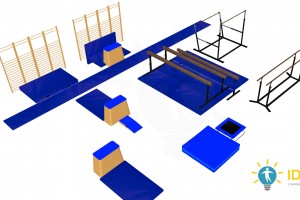 Une photo d'un plan de salle réalisé dans le cadre d'une leçon Parkour avec des élèves de 5e-6e primaire (10-12 ans).